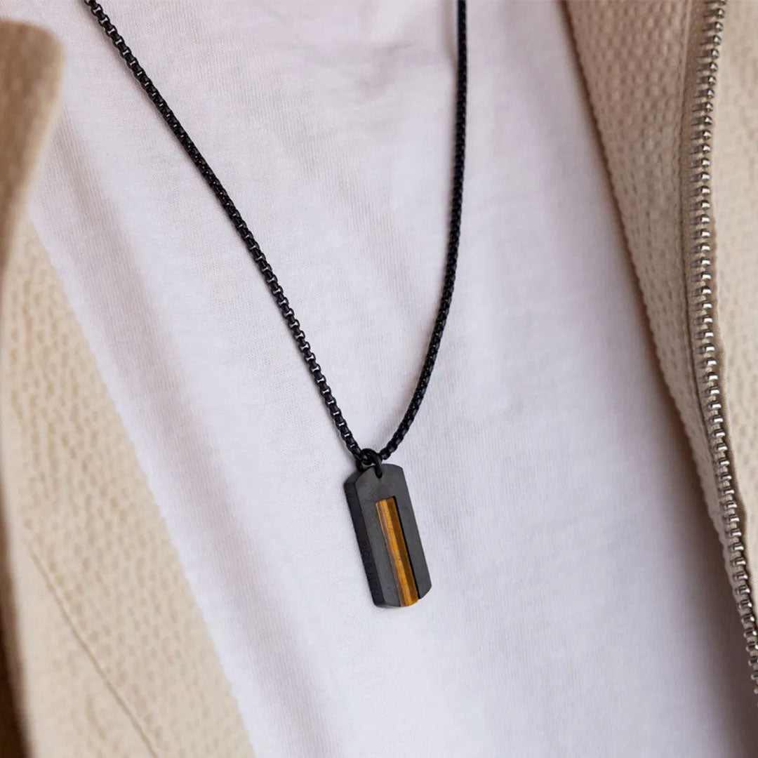 Made from 316L Stainless Steel Black PVD, with semi-precious stones.