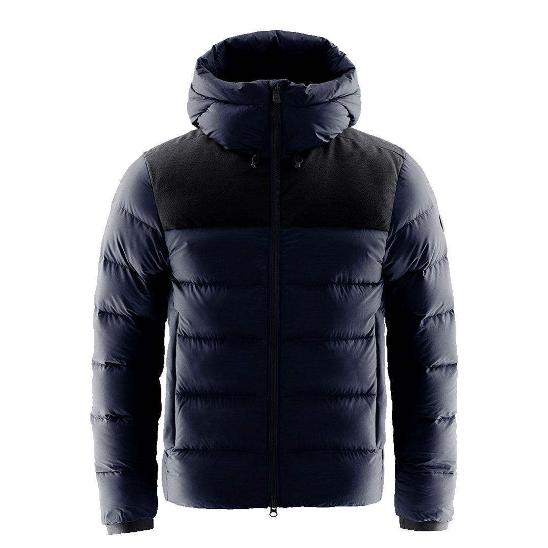 Merino Cloud Down Hood constructed in a 20 denier down proof merino wool fabric. The jacket is windproof and PFC-free DWR treated for water repellency, with an inside lining in Graphene fabric which optimizes thermoregulation. Knitted merino wool at chest and upper back. Insulated with 90/10 Blue Sign and RDS certified down and feathers for warmth. Fill power: 700. Water resistant front zipper. The waist pockets are fleece-lined for added comfort, and the inner pocket with a zipper provides secure storage. The adjustable drawstrings at the hood and bottom hem, along with the elastic cuffs at the sleeve ends, provide a customized fit. Bloc metal logo on the sleeve and bloc logo on the top of the hood.