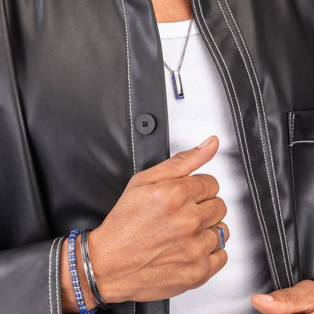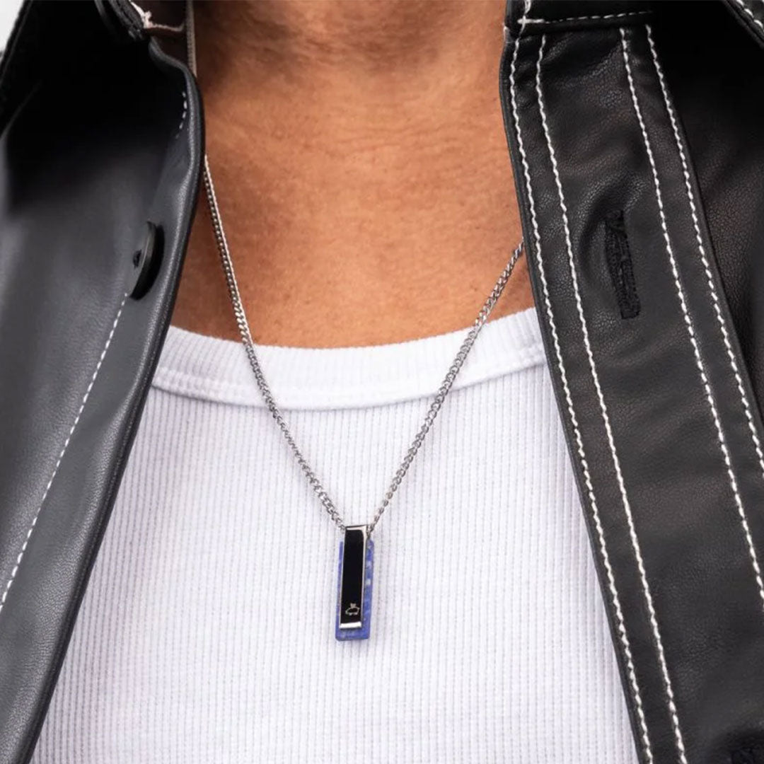 This exquisite necklace is crafted from high-quality stainless steel and adorned with a subtle and refined elongated pendant.