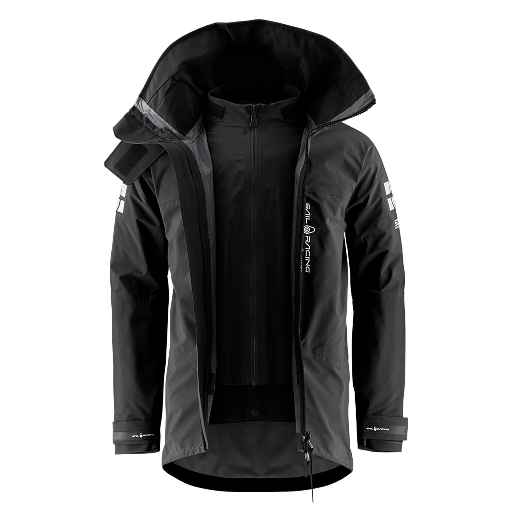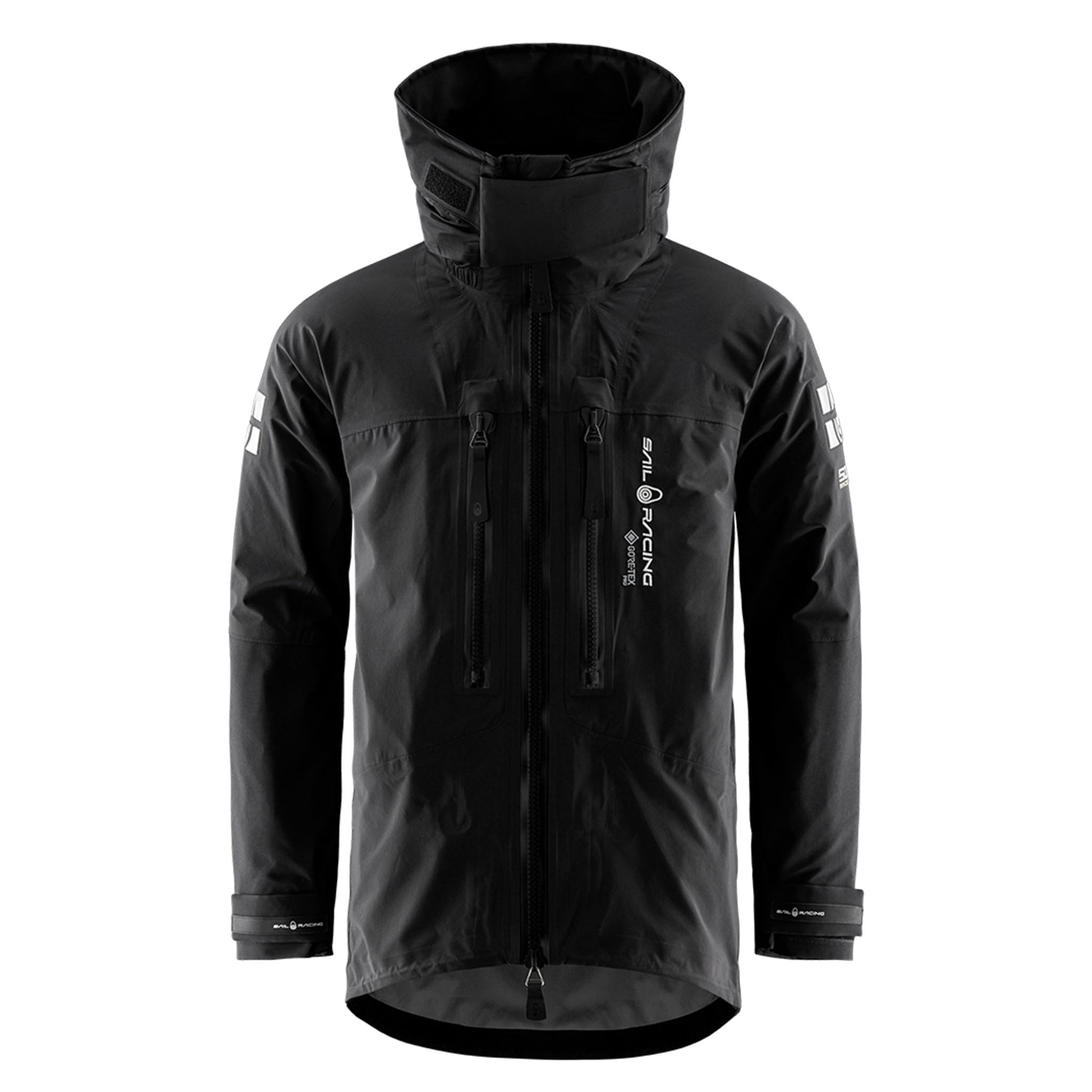 The jacket has a large hanging loop in webbing tape at the back of the neck and is equipped with high-frequency reflective logos on the sleeves for increased visibility in the dark. Designed with Sail Racing and GORE-TEX® PRO embroidery on the chest and 50KTS embroidery on the sleeve. Embroidered Sail Racing block logo and embroidered GORE-TEX® PRO logo at the neck. Printed Sail Racing logos on the cuffs and hood. GORE-TEX® PRO Print at the back.