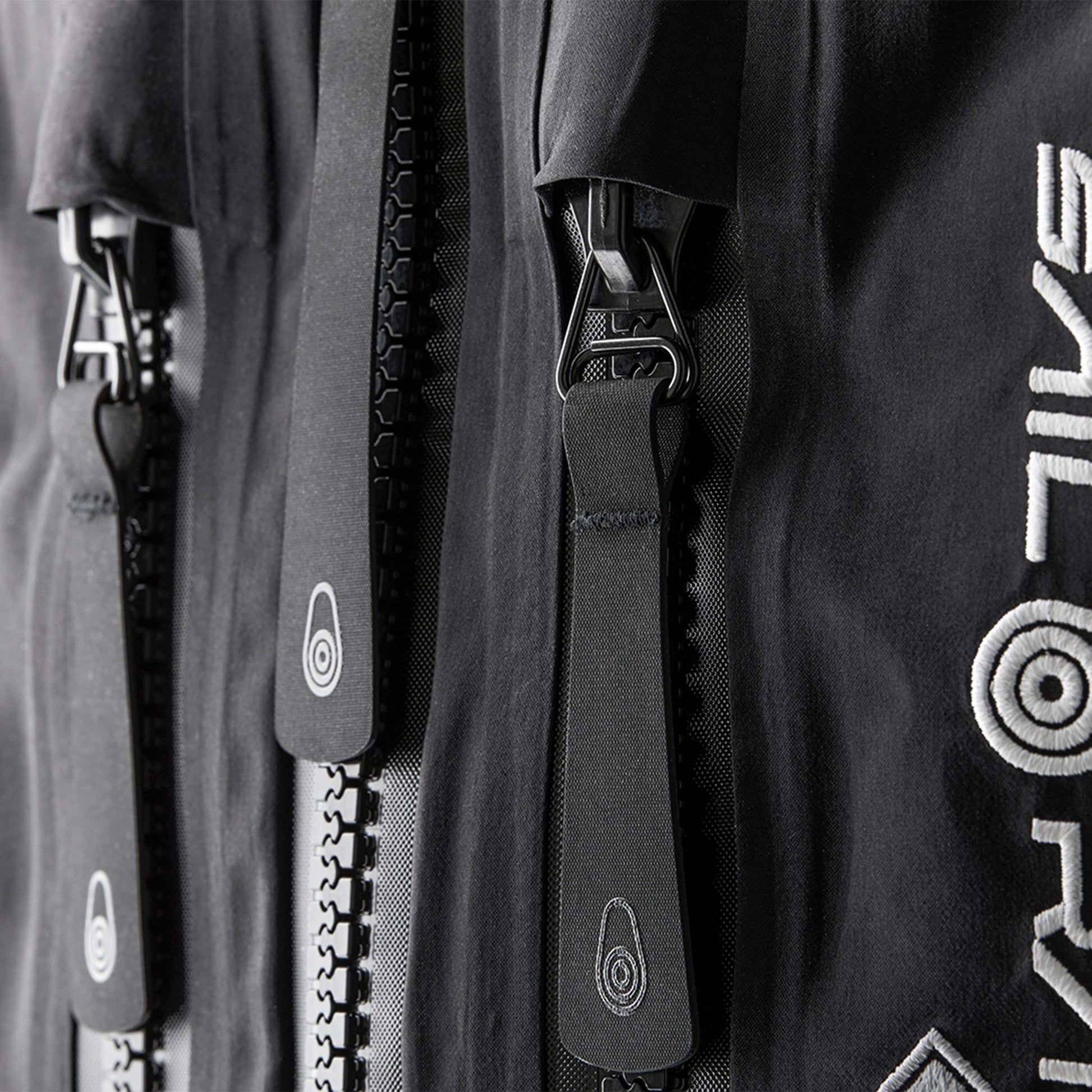 The jacket has a two-way waterproof YKK AquaSeal® zipper with large Hypalon pulls at the front and a welded, inner placket designed to minimize water leakage. The hood is constructed with a lighter GORE-TEX® PRO Technology fabric to make it easier to fold into the collar and has a welded hood edge with channels for water drainage. The hood is equipped with an adjustable drawstring on the inside and Velcro adjustment at the back for a customized fit that protects against water and wind. The hood is also lined with microfleece for comfort. On the outside of the hood, there are printed details with reflective effects for increased visibility in low-light conditions.